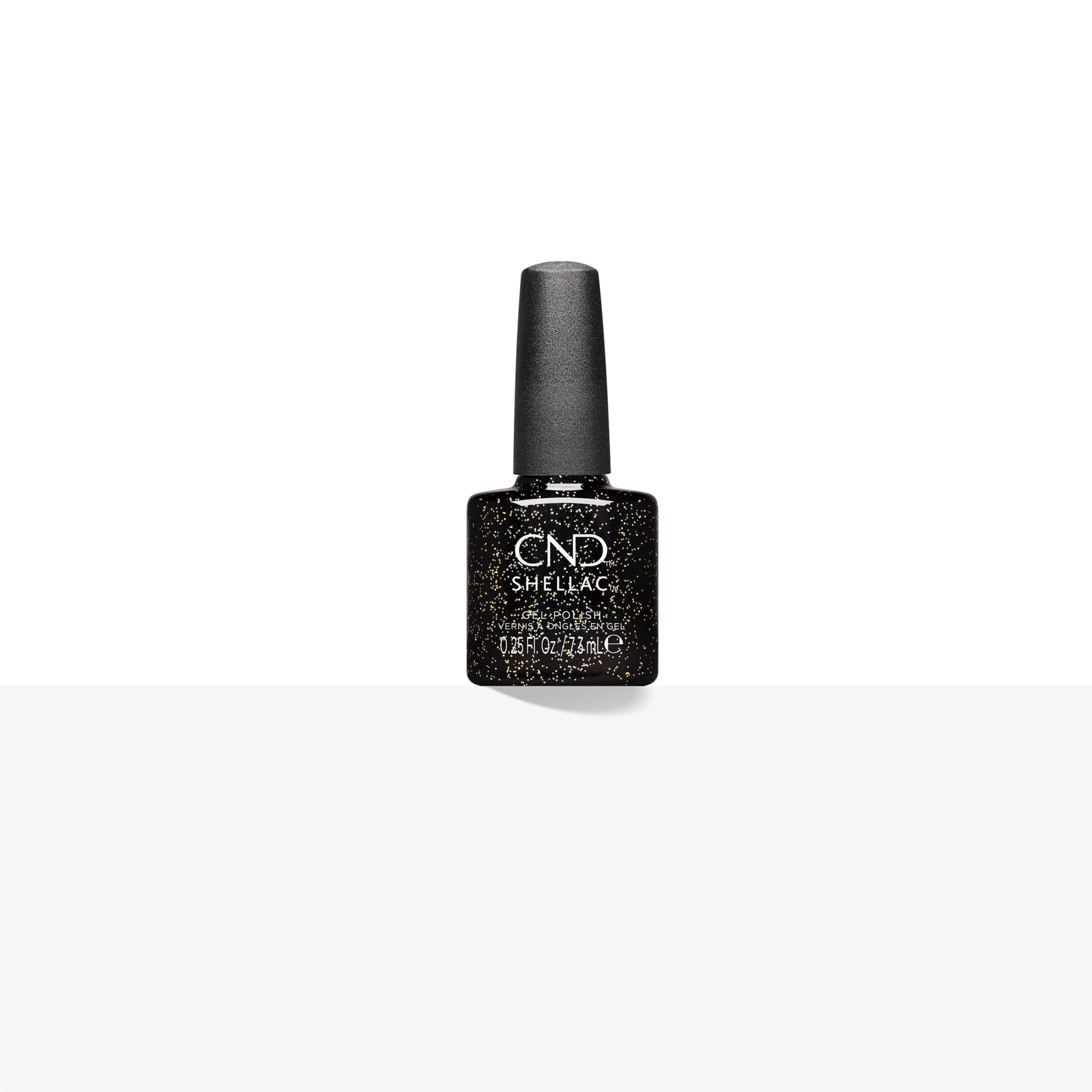 Part of the Winter 2024 CND™ QUEEN-TESSENTIAL collection: OPULENT ONYX: Black with a holographic glitter finish for a plot twist & a bewitching effect.