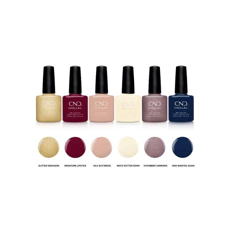 Available in both CND SHELLAC Brand Gel Polish and CND VINYLUX Long Wear Polish, the versatile hues unite the casual with the elegant to create effortless looks to take you from low-key gatherings, to a fancy night out. The holiday collection includes: Glitter Sneakers, a shimmering gold; Signature Lipstick, a deep, dramatic red; Silk Slip Dress, a universal pale pink; White Button Down, a warm winter white; Statement Earrings, a glittery mauve and High Waisted Jeans, a deep navy.